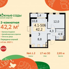 2-комн. квартира с европланировкой и отделкой в ЖК "Южные сады" на 16 этаже. Общая площадь: 42.3 кв.м., жилая: 22.8 кв.м., суммарная площадь гостиной-столовой с кухонной зоной: 19.7 кв.м. Европланировка, зона гостиной комнаты объединена с кухней. Угловая квартира, очень светлая,...