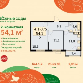 2-комн. квартира с отделкой в ЖК "Южные сады" на 19 этаже. Общая площадь: 54.1 кв.м., жилая: 24.3 кв.м., площадь просторной кухни-столовой: 15 кв.м. Комнаты изолированные, все окна выходят на одну сторону. В квартире одна лоджия, один совмещенный санузел. Высота потолков 2.95 м. Дом...