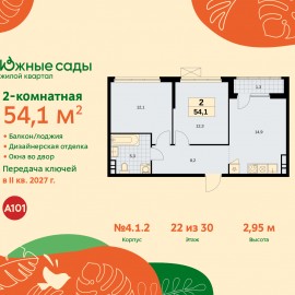 2-комн. квартира с отделкой в ЖК "Южные сады" на 29 этаже. Общая площадь: 54 кв.м., жилая: 29.2 кв.м., площадь просторной кухни-столовой: 11.8 кв.м. Комнаты изолированные, все окна выходят на одну сторону. В квартире один балкон, один совмещенный санузел. Высота потолков 2.95 м. Дом...