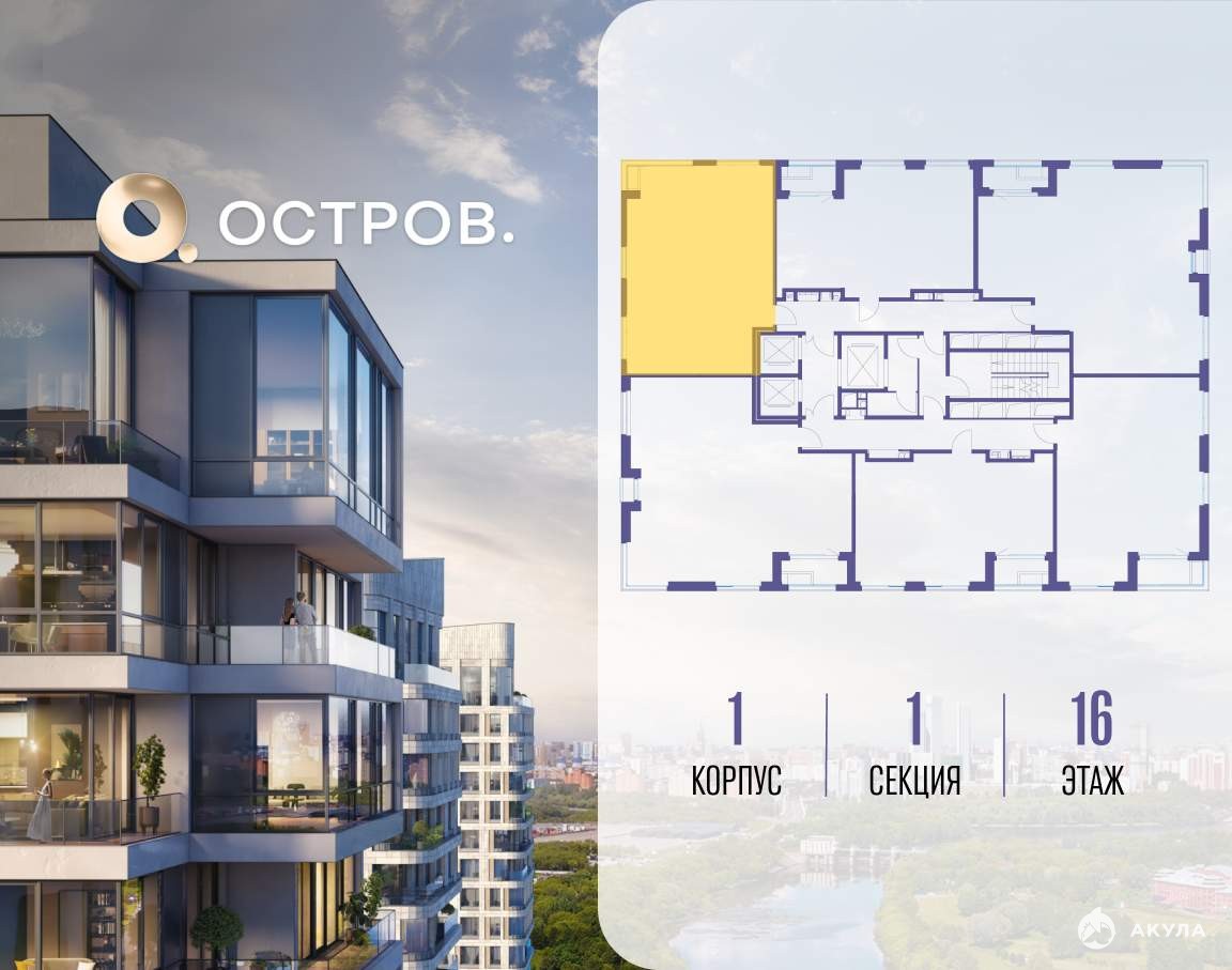 Продаётся 2-комн. квартира от застройщика: общая площадь 69.60 м, жилая 27.80 м, кухня 20.70 м, 16-й этаж, жилой квартал «Остров 6», корпус 1 (секция 1) . Срок сдачи: 4 квартал 2025 года.