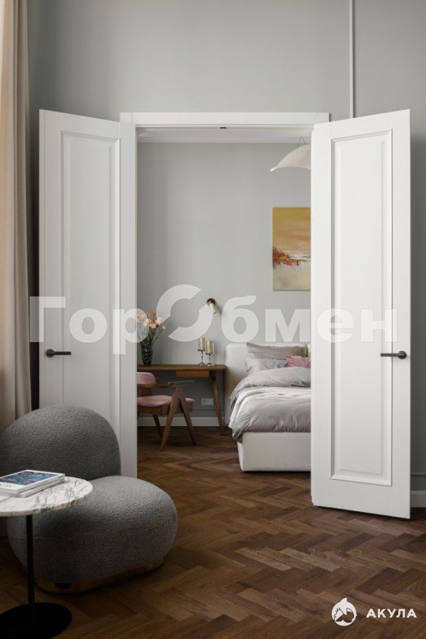 На полу паркетная доска Coswick. Распашные двери Эстет высотой 2, 5 метра.