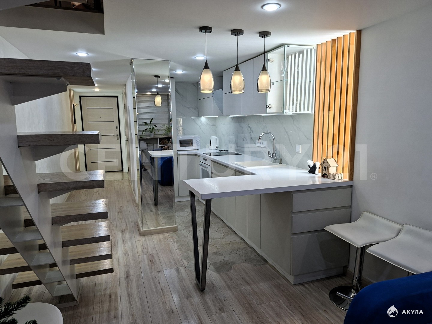 Идеальна для:Для жизни: Тем, кто ценит современный дизайн, комфорт и не хочет заниматься ремонтом.Для инвестиций: Стабильный доход от аренды до 220 000 руб./мес. благодаря премиальному ремонту и локации.Для бизнеса: Удобный вход на первом этаже позволяет организовать офис, студию или салон (рядом уже есть бизнес-помещения).