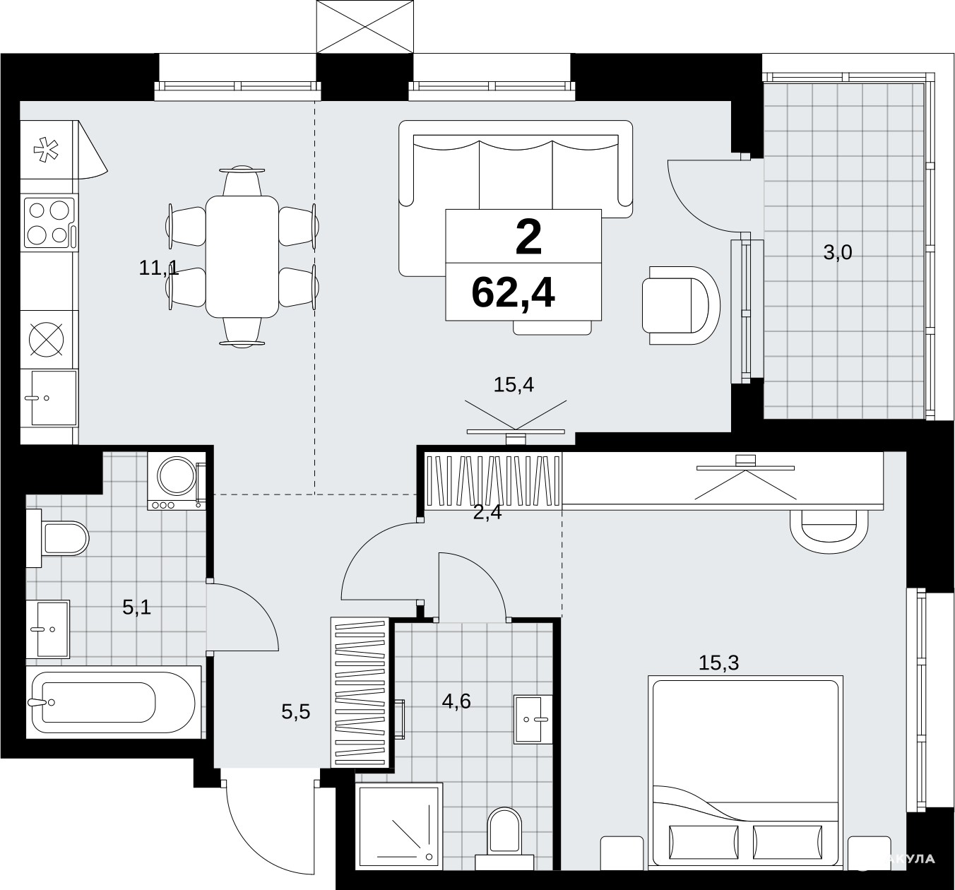 Двухкомнатная квартира с европланировкой в ЖК "Дзен-кварталы" на 7 этаже. Квартира без отделки, полностью готова к ремонту. Общая площадь: 62.4 кв.м., жилая: 30.8 кв.м., общая площадь гостиной-столовой с кухонной зоной: 26.7 кв.м. Европланировка, за счет большой площади кухни-гостиной квартира выглядит просторной и очень удобна для жизни. Квартира угловая, очень светлая, естественная вентиляция при открытии окон. В квартире одна лоджия, два совмещенных санузла. Высота потолков 3.1 м.