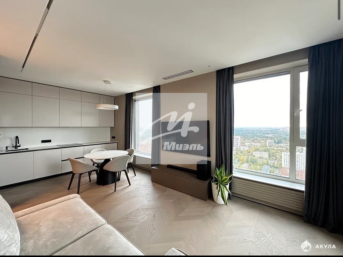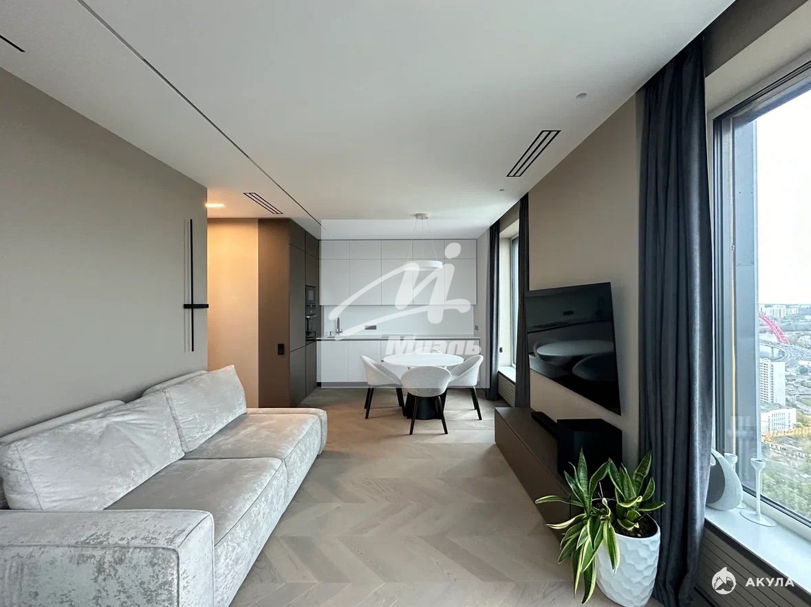 Угловая квартира с панорамными окнами и видом на Живописный мост, Серебряный Бор, Строгинскую пойму. состоит из кухни-гостиной, спальни, прихожей, 2 с/у. Предусмотрено много мест для хранения и хозяйственно-бытовой блок. В квартире выполнен дизайнерский ремонт с использованием высококачественных материалов.