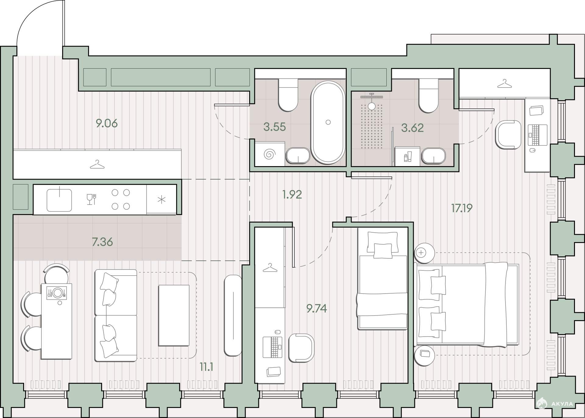 Продается 2-комн. квартира, площадью 63.54 м2 в монолитной новостройке в 12 мин. пешком от м. Кунцевская, район города - Кунцево. Возможен вариант покупки с использованием ипотечных средств, есть рассрочка.