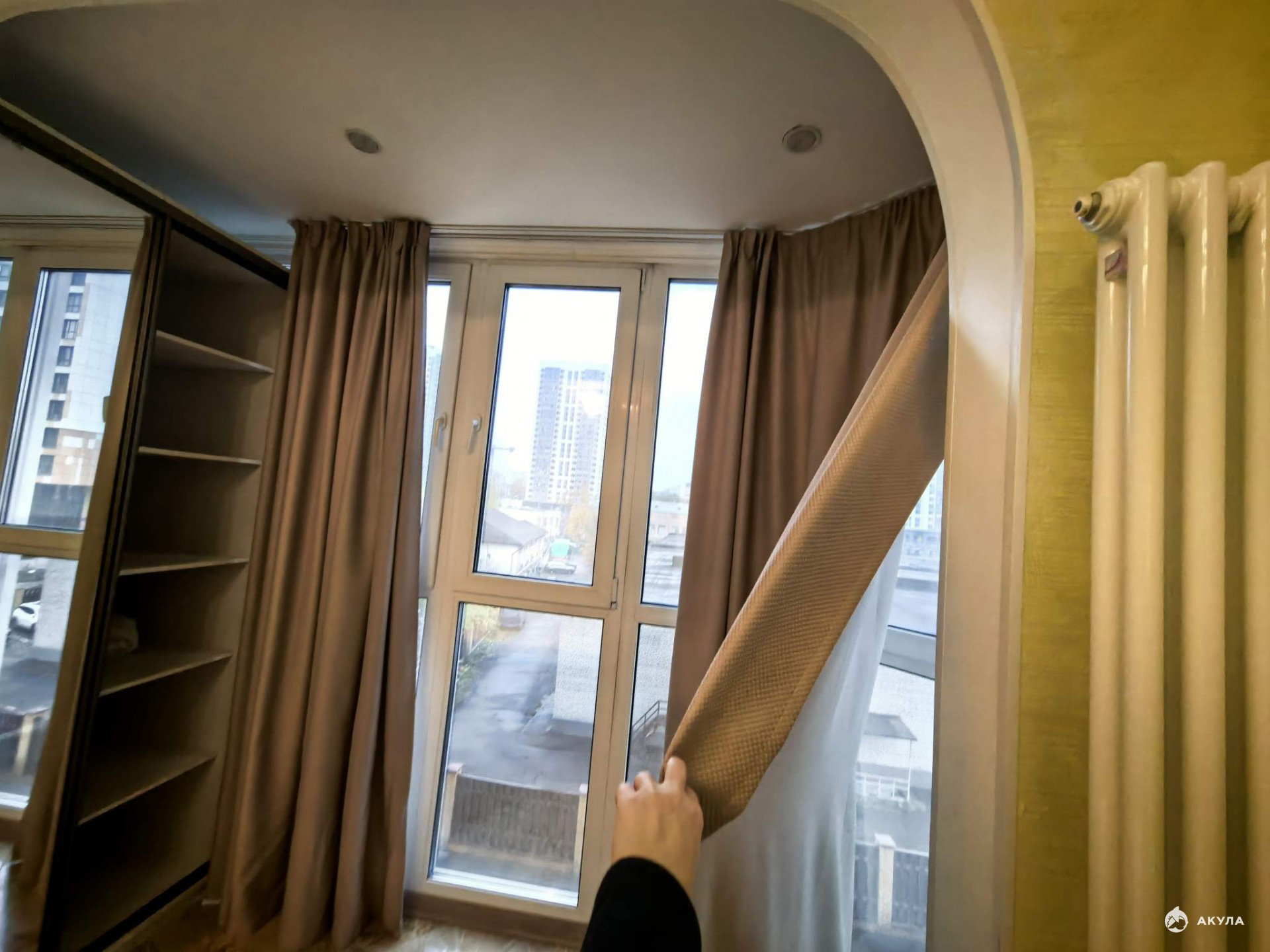 Окна выходят как во двор, так и на тихую улицу, это вторая линия, от реки поэтому можно наслаждаться тишиной, подальше от шума дорог.