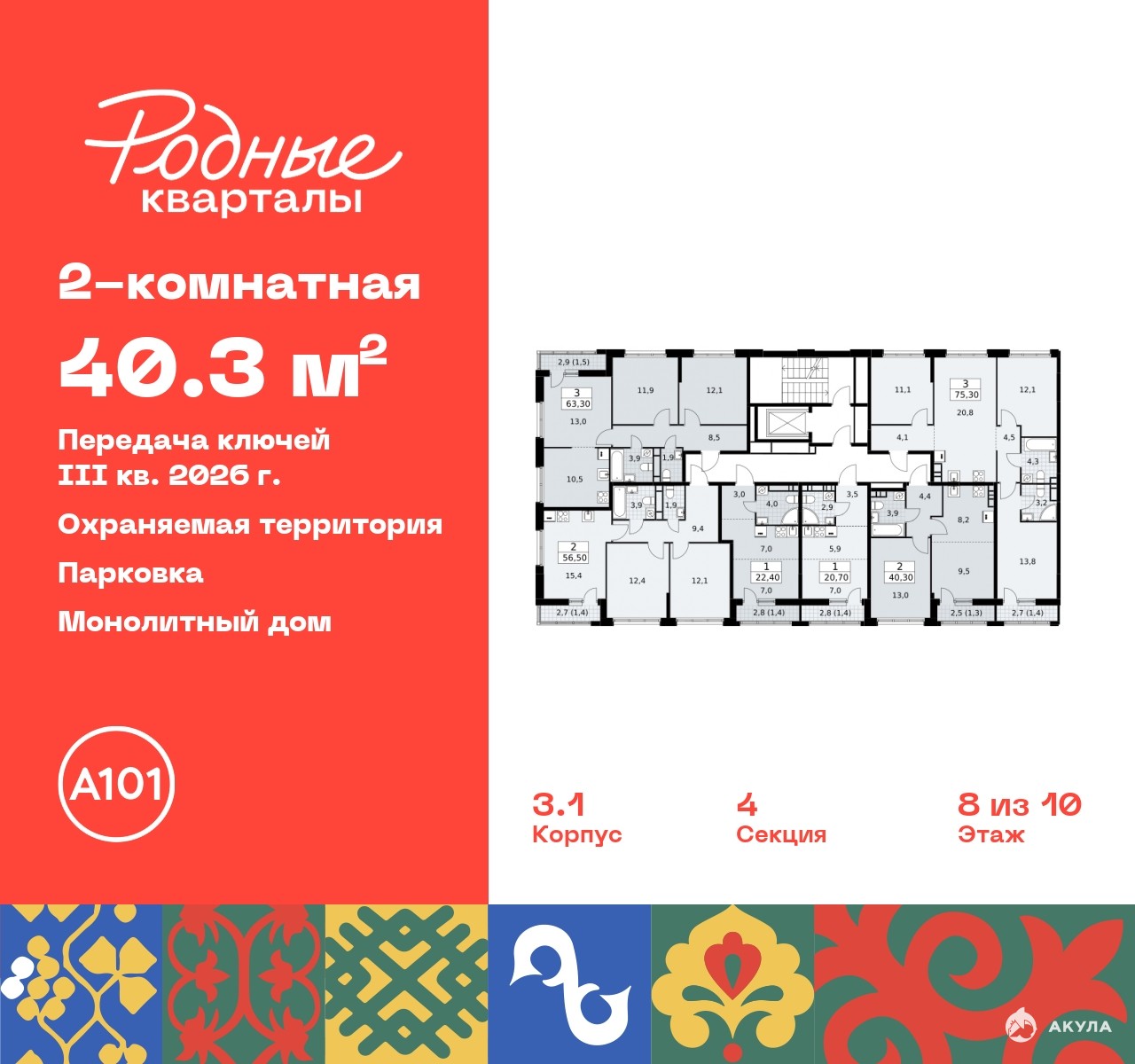 Дом монолитный, черырехподъездный, высотой 10 этажей. Квартира находится в 4-й секции в корпусе 3.1. На этаже 6 квартир. В подъезде 1 грузовой лифт. Начало строительства - 2 квартал 2024 года. Окончание строительства - 3 квартал 2026 года. Оформление сделки по договору долевого участия.
