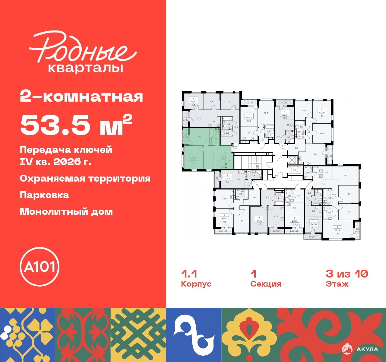 Артикул квартиры по базе застройщика 96К-1.1-18.