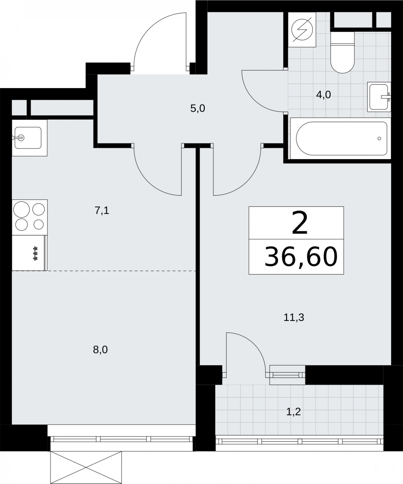 Продается 2-комн. квартира с европланировкой от застройщика в ЖК "Родные кварталы" на 8 этаже. Квартира без отделки, после оформления собственности можно делать ремонт. Общая площадь: 36.6 кв.м., жилая: 19.3 кв.м., суммарная площадь гостиной-столовой с кухонной зоной: 15.1 кв.м. Европланировка, кухня-гостиная - идеальный вариант для тех, кто любит часто принимать гостей. Комнаты изолированные, все окна выходят на одну сторону. В квартире одна лоджия, один совмещенный санузел. Высота потолков 2.9 м.
