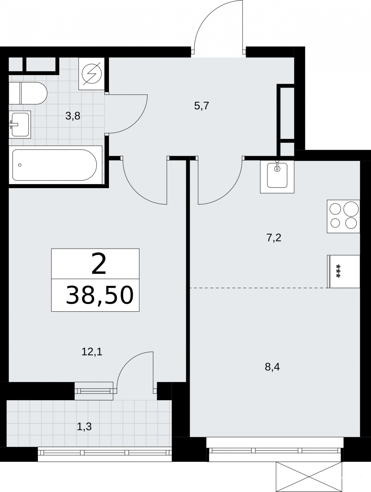 2-комн. квартира с европланировкой от застройщика в ЖК "Родные кварталы" на 9 этаже. Квартира без отделки, после оформления собственности можно делать ремонт. Общая площадь: 38.5 кв.м., жилая: 20.5 кв.м., суммарная площадь гостиной-столовой с кухонной зоной: 15.6 кв.м. Европланировка, в просторной кухне-гостиной удобно как готовить, так и отдыхать. Комнаты изолированные, все окна выходят на одну сторону. В квартире одна лоджия, один совмещенный санузел. Высота потолков 2.9 м.