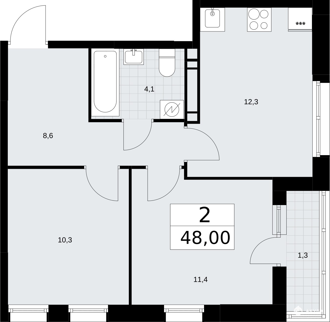 Просторная двухкомнатная квартира в ЖК "Родные кварталы" на 10 этаже. Квартира без отделки, полностью готова к ремонту. Общая площадь: 48 кв.м., жилая: 21.7 кв.м., площадь просторной кухни-столовой: 12.3 кв.м. Квартира угловая, идеально подойдет любителям тишины и панорамных видов. В квартире одна лоджия, один совмещенный санузел. Высота потолков 2.95 м.