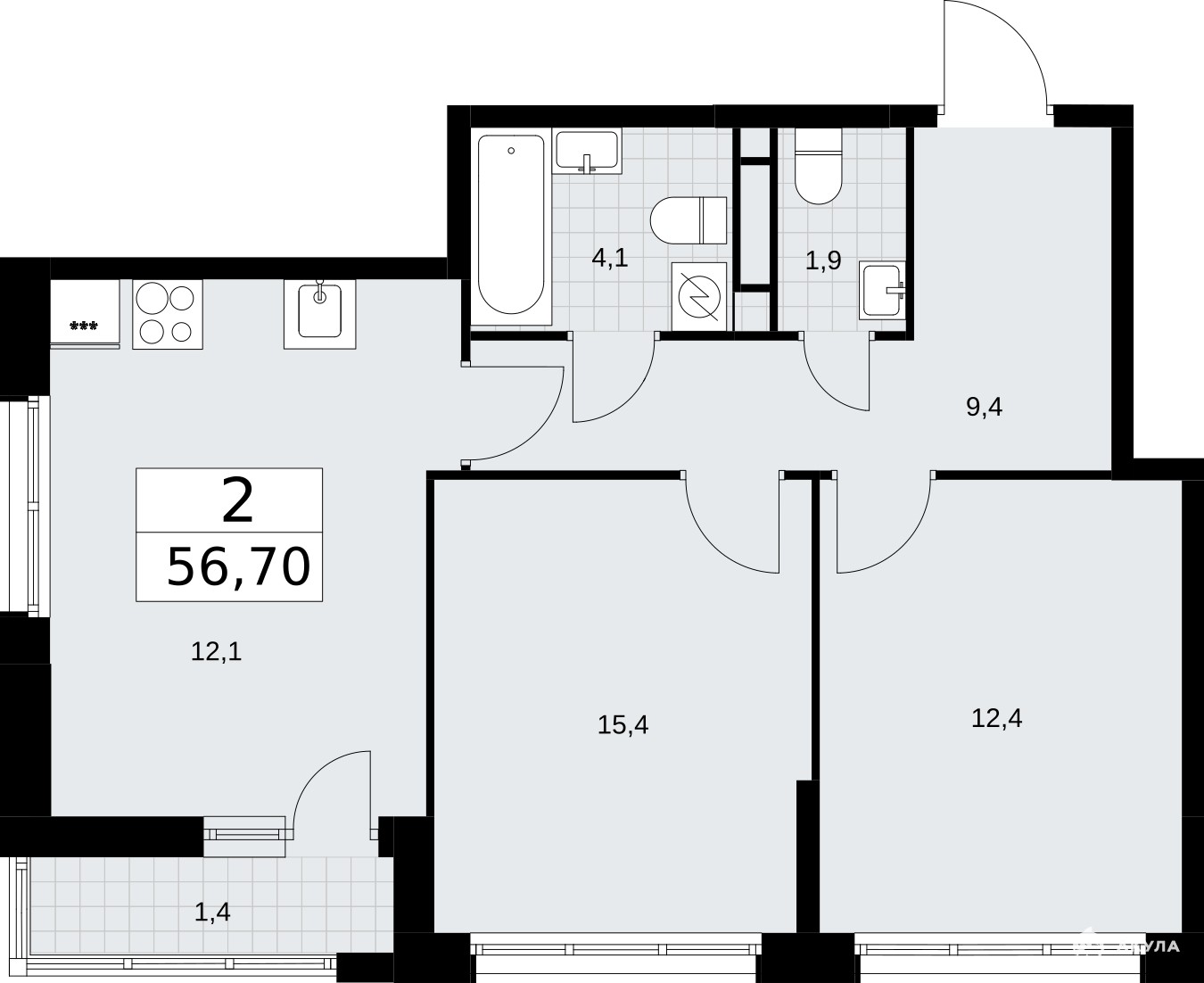 Двухкомнатная квартира в ЖК "Родные кварталы" на 3 этаже. Квартира без отделки, полностью готова к чистовой отделке и дальнейшему ремонту. Общая площадь: 56.7 кв.м., жилая: 27.8 кв.м., площадь просторной кухни-столовой: 12.1 кв.м. Квартира угловая, окна oбecпeчивaют paвнoмepнoe ocвeщeниe в тeчeниe дня. В квартире одна лоджия, один совмещенный и один раздельный санузел. Высота потолков 2.95 м.