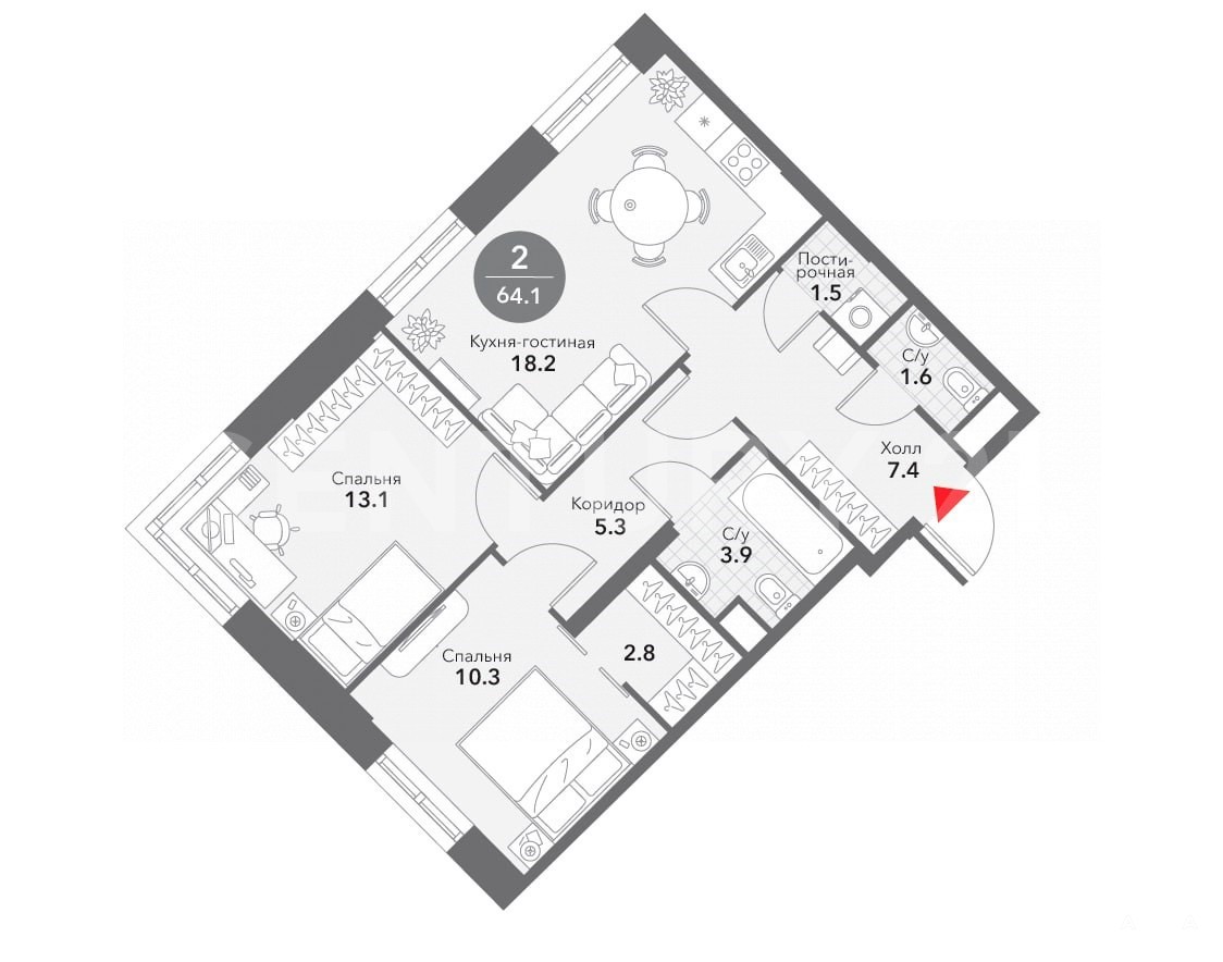 - 64 м²