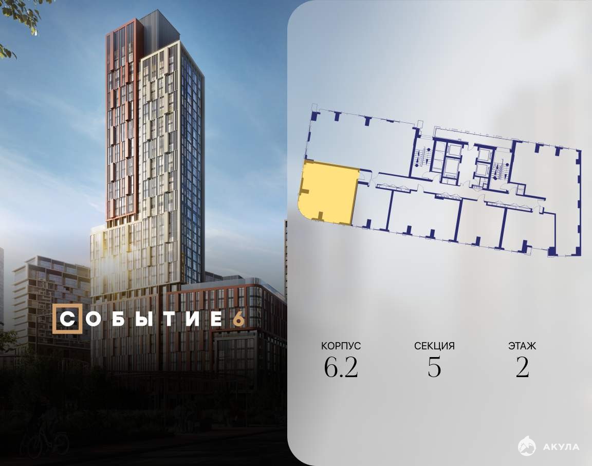 Продаётся 2-комнатная квартира от застройщика: общая площадь 64.80 м, жилая 26.20 м, кухня 21.00 м, 2-й этаж, жилой квартал «Событие-6», корпус 2 (секция 5) Срок сдачи: 1 квартал 2029 года.