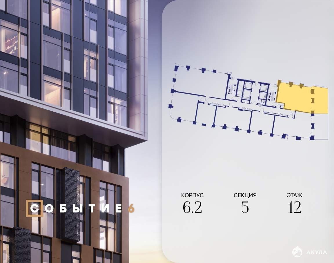 Продаётся 2-комнатная квартира от застройщика: общая площадь 78.80 м, жилая 35.40 м, кухня 15.90 м, 12-й этаж, жилой квартал «Событие-6», корпус 2 (секция 5) Срок сдачи: 4 квартал 2029 года.