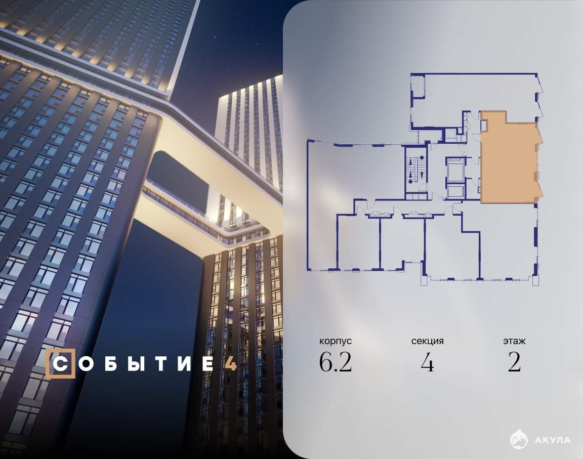 Продаётся 2-комнатная квартира от застройщика: общая площадь 65.50 м, жилая 28.99 м, кухня 21.10 м, 2-й этаж, жилой квартал «Событие-6», корпус 2 (секция 4) Срок сдачи: 1 квартал 2029 года.
