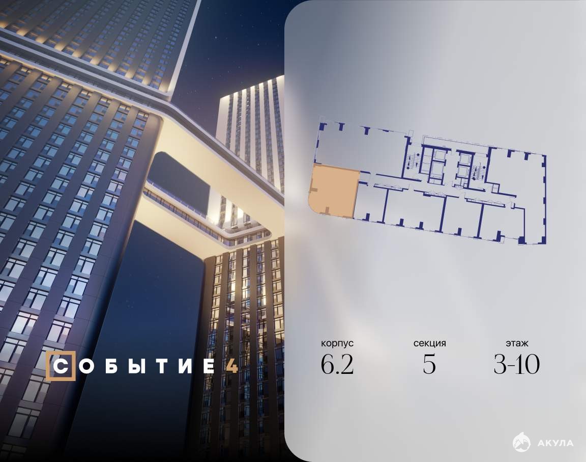 Продаётся 2-комнатная квартира от застройщика: общая площадь 64.30 м, жилая 26.30 м, кухня 20.60 м, 8-й этаж, жилой квартал «Событие-6», корпус 2 (секция 5) Срок сдачи: 1 квартал 2029 года.