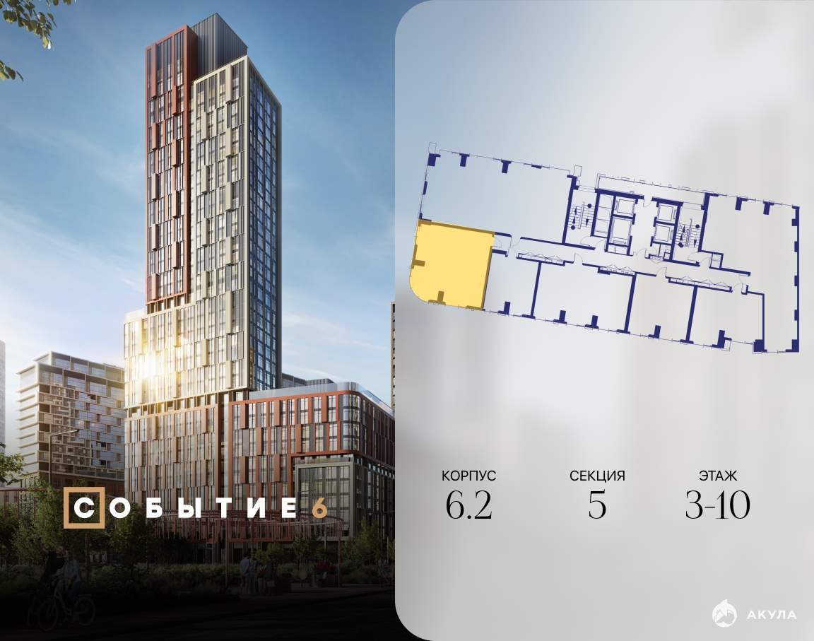 Продаётся 2-комнатная квартира от застройщика: общая площадь 64.30 м, жилая 26.30 м, кухня 20.60 м, 10-й этаж, жилой квартал «Событие-6», корпус 2 (секция 5) Срок сдачи: 1 квартал 2029 года.