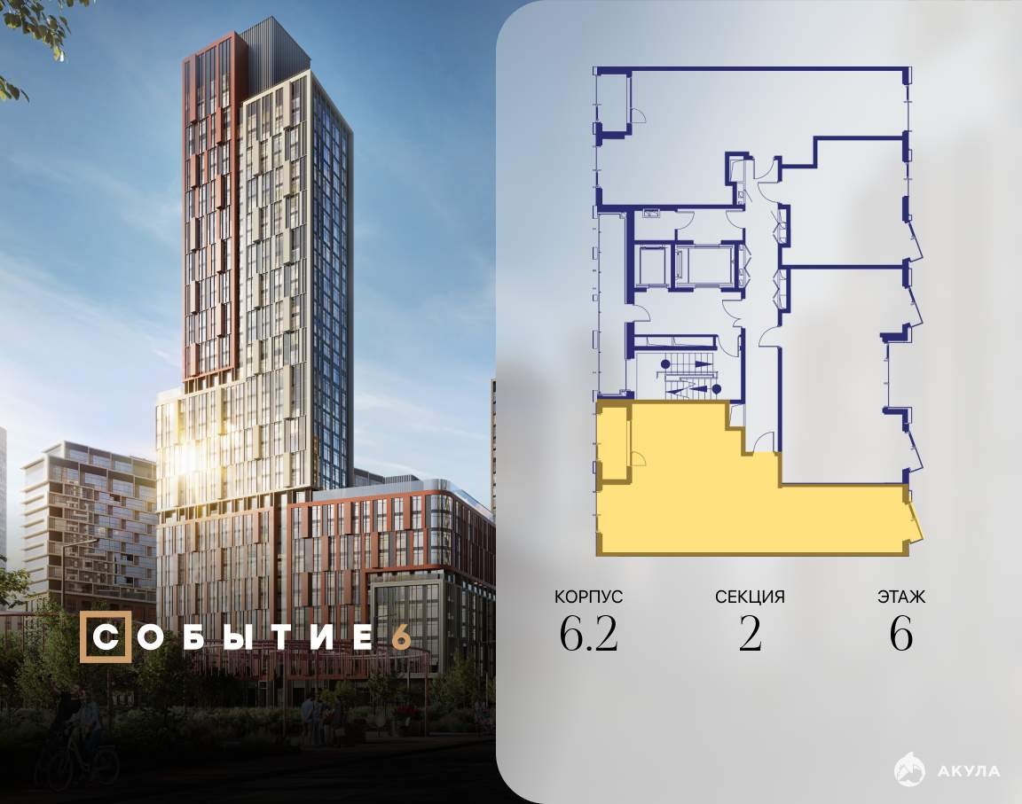 Продаётся 2-комнатная квартира от застройщика: общая площадь 74.30 м, жилая 31.80 м, кухня 18.50 м, 6-й этаж, жилой квартал «Событие-6», корпус 2 (секция 2) Срок сдачи: 1 квартал 2029 года.