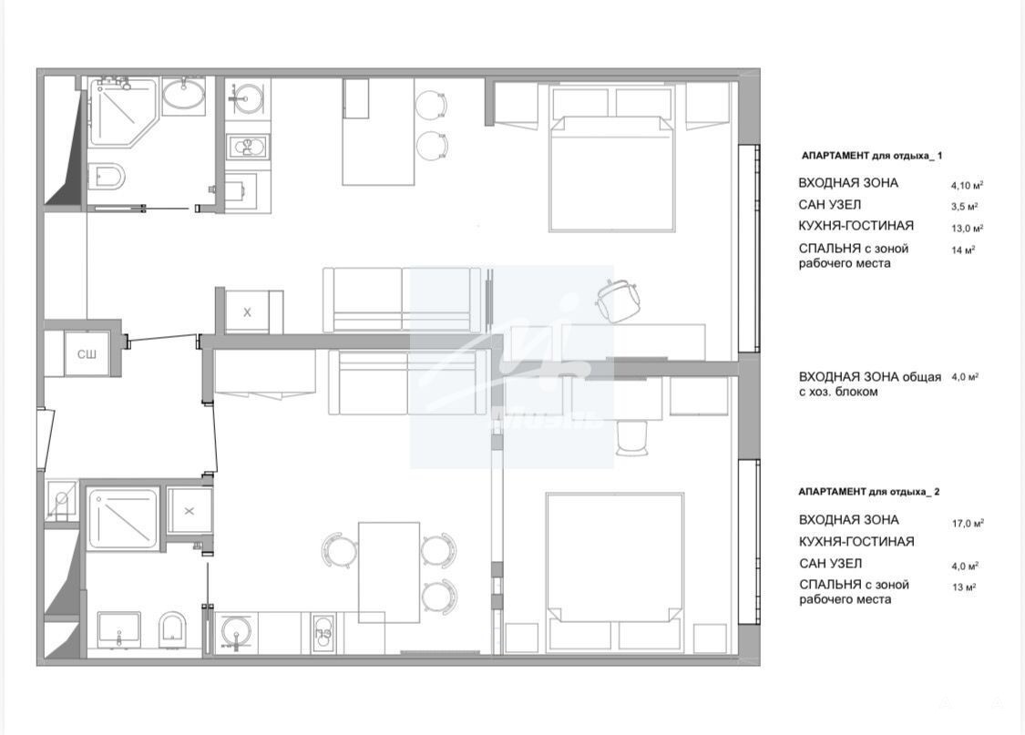 апартаменты можно использовать под аренду как две отдельные студии или для жизни, как двухкомнатную квартиру