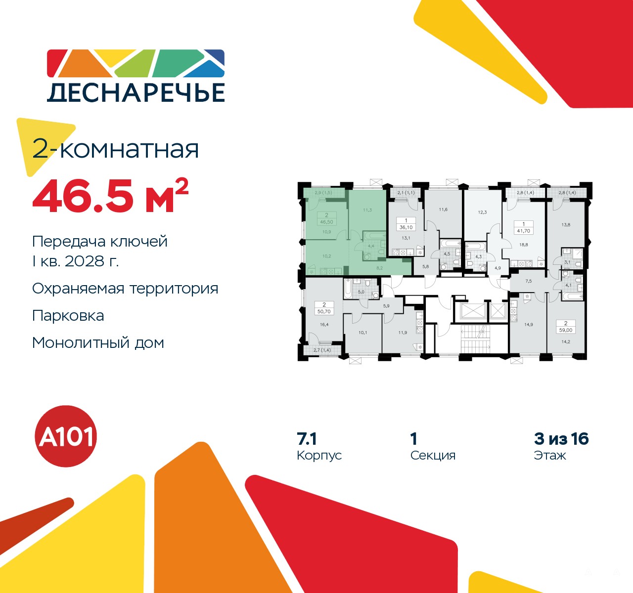 Дом монолитный, многоподъездный, переменной этажности, от 8 до 16 этажей. Квартира находится в 1-й секции высотой 14 этажей в корпусе 7.1. На этаже 5 квартир. В подъезде 1 пассажирский и 1 грузовой лифт. Начало строительства - 2 квартал 2025 года. Окончание строительства - 1 квартал 2028 года. Оформление сделки по договору долевого участия.