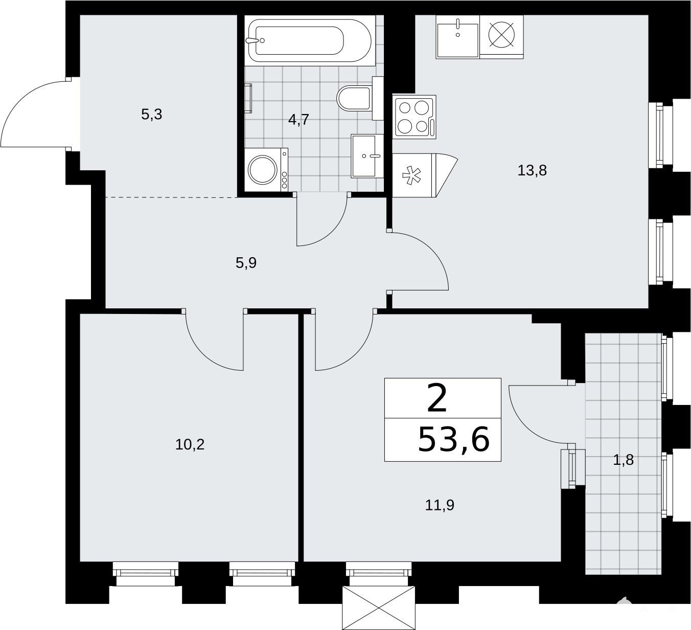 2-комн. квартира с отделкой в ЖК "Деснаречье" на 20 этаже. Общая площадь: 53.6 кв.м., жилая: 22.1 кв.м., площадь просторной кухни-столовой: 13.8 кв.м. Квартира угловая, окна oбecпeчивaют paвнoмepнoe ocвeщeниe в тeчeниe дня. В квартире одна лоджия, один совмещенный санузел. Высота потолков 2.95 м.