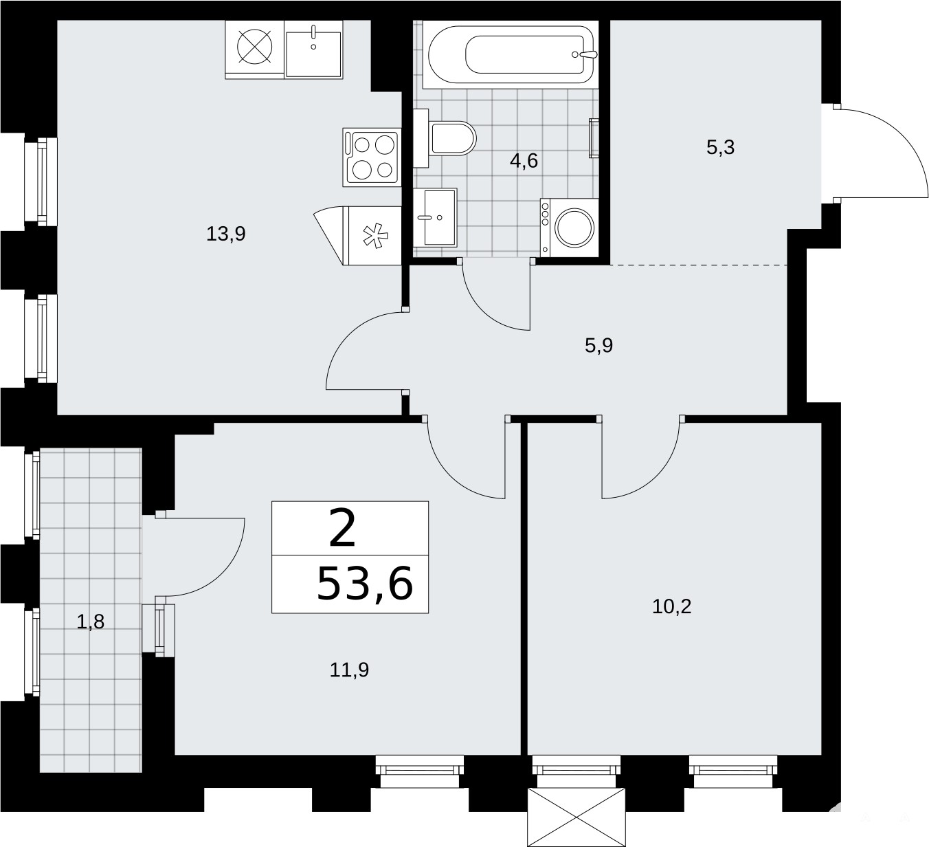 Продается двухкомнатная квартира с отделкой в ЖК "Деснаречье" на 12 этаже. Общая площадь: 53.6 кв.м., жилая: 22.1 кв.м., площадь просторной кухни-столовой: 13.9 кв.м. Квартира угловая, очень светлая, естественная вентиляция при открытии окон. В квартире одна лоджия, один совмещенный санузел. Высота потолков 2.95 м.
