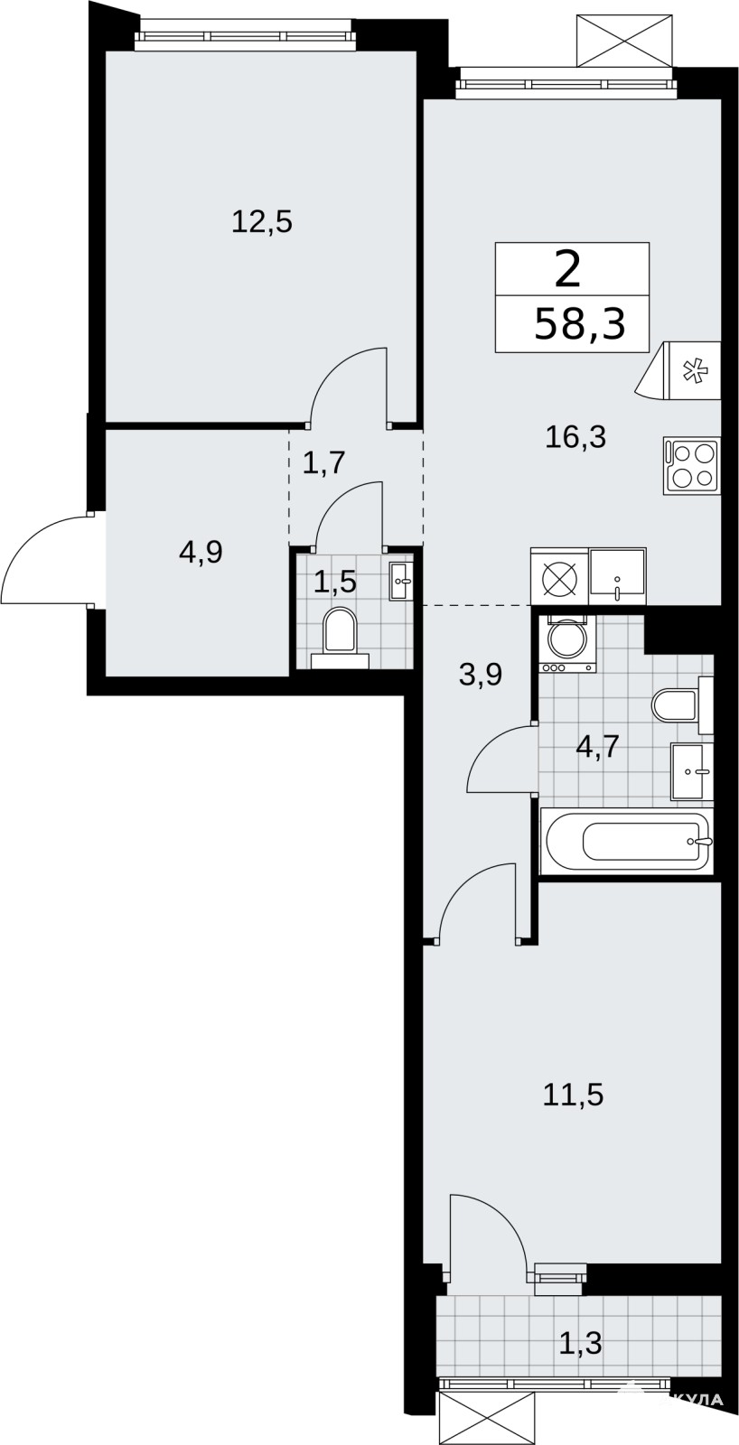 - 16.3 м²