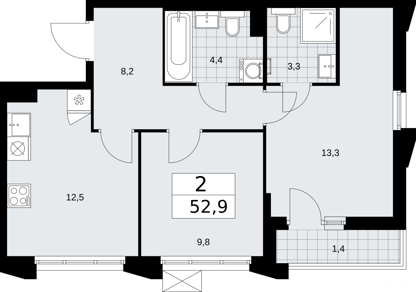Продается двухкомнатная квартира в ЖК "Деснаречье" на 8 этаже. Квартира без отделки, полностью готова к ремонту. Общая площадь: 52.9 кв.м., жилая: 23.1 кв.м., площадь просторной кухни-столовой: 12.5 кв.м. Угловая квартира, идеально подойдет любителям тишины и панорамных видов. В квартире одна лоджия, два совмещенных санузла. Высота потолков 2.95 м.