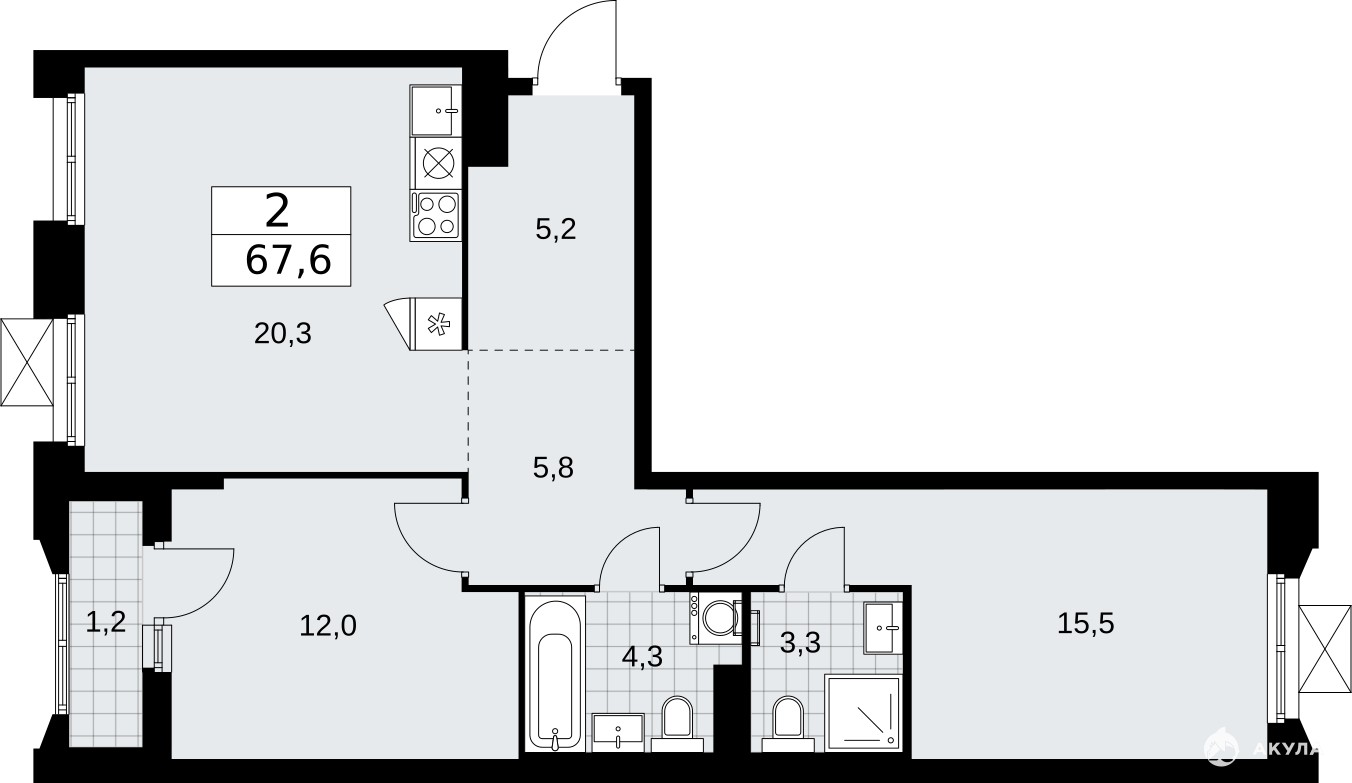 - 20.3 м²