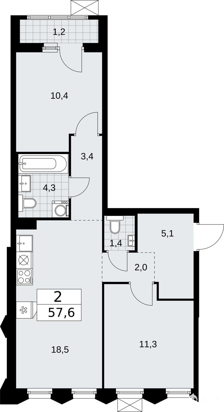 2-комн. квартира от застройщика в ЖК "Деснаречье" на 7 этаже. Квартира без отделки, после оформления собственности можно делать ремонт. Общая площадь: 57.6 кв.м., жилая: 21.7 кв.м., площадь просторной кухни-столовой: 18.5 кв.м. Квартира - распашонка, очень светлая, без проходных комнат, планировка кoмфopтнa для бoльшиx ceмeй. В квартире одна лоджия, один совмещенный и один раздельный санузел. Высота потолков 2.95 м.