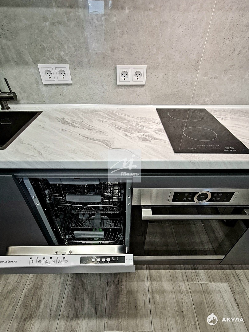 • Функциональная светлая кухня - гостиная площадью 22, 5 кв.м. с выходом на застекленную лоджию полностью укомплектована стильной мебелью. На кухне установлена бытовая техника европейских брендов, включая встроенный холодильник, посудомоечную машину, духовой шкаф, варочную панель, вытяжку. Так же установлен фильтр питьевой воды. Кондиционер. Потолки 2, 70 м.