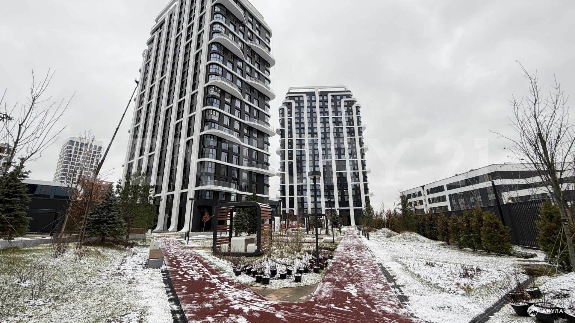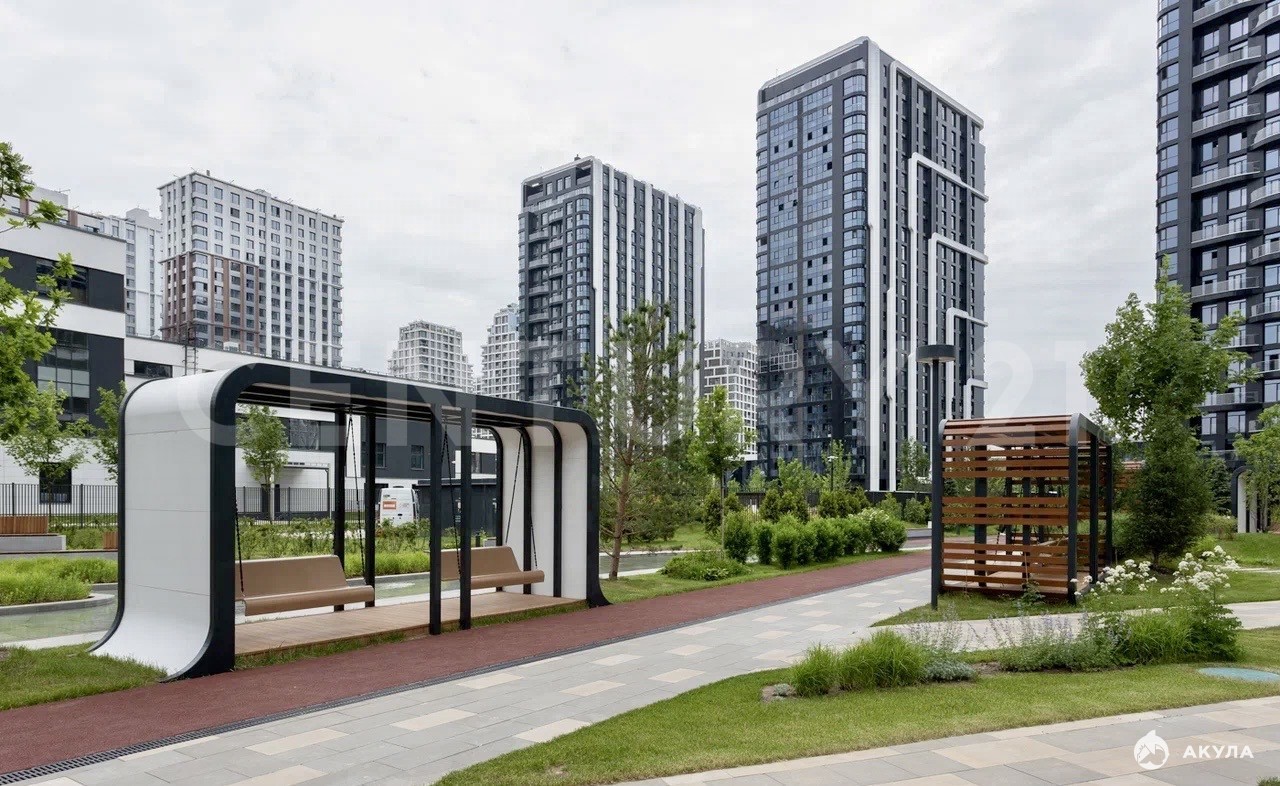Отделка выполнена по авторскому дизайн-проекту с высококлассными материалами: натуральная паркетная доска, керамогранит с системой теплого пола, экологически безопасная краска, надежные двери. На кухне уже установлен стильный современный гарнитур со встроенной бытовой техникой, обеденный стол и стулья, ванная комната укомплектована качественной сантехникой, комнаты мебелью. Увеличенные окна квартиры выходят на соседний корпус и школу, а внутренний двор-парк благоустроен собственным ручьём, ландшафтными террасами и холмами, обеспечивая отличную инсоляцию и приятные виды.