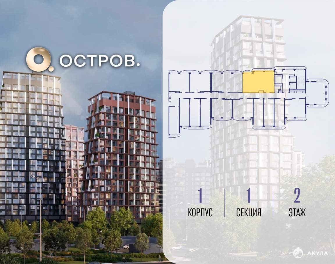 Продаётся 2-комн. квартира от застройщика: общая площадь 62.40 м, жилая 27.70 м, кухня 20.00 м, 2-й этаж, жилой квартал «Остров 14», корпус 1 (секция 1) . Срок сдачи: 2 квартал 2029 года.