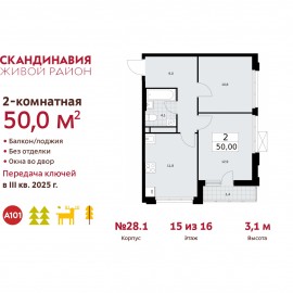 2-комн. квартира бизнес-класса в ЖК "Скандинавия" на 15 этаже. Квартира без отделки, после получения ключей можно делать ремонт. Общая площадь: 50 кв.м., жилая: 23.7 кв.м., площадь просторной кухни-столовой: 11.8 кв.м. Квартира угловая, очень светлая, естественная вентиляция при...
