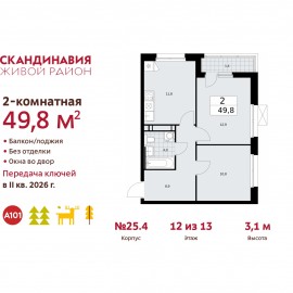 Двухкомнатная квартира бизнес-класса от застройщика в ЖК "Скандинавия" на 12 этаже. Квартира без отделки, после выдачи ключей можно делать ремонт. Общая площадь: 49.8 кв.м., жилая: 23.7 кв.м., площадь просторной кухни-столовой: 11.8 кв.м. Угловая квартира, очень светлая, естественная...