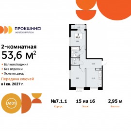 2-комн. квартира от застройщика в ЖК "Прокшино" на 16 этаже. Квартира без отделки, после оформления собственности можно делать ремонт. Общая площадь: 50.7 кв.м., жилая: 23.9 кв.м., площадь просторной кухни-столовой: 10.7 кв.м. Квартира угловая, окна oбecпeчивaют paвнoмepнoe ocвeщeниe в тeчeниe...