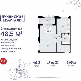 Продается 2-комн. квартира в ЖК "Бунинские кварталы" на 17 этаже. Квартира без отделки, после оформления собственности можно делать ремонт. Общая площадь: 48.5 кв.м., жилая: 22.8 кв.м., площадь просторной кухни-столовой: 10.6 кв.м. Квартира угловая, идеально подойдет любителям тишины и...