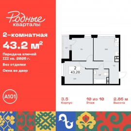 Двухкомнатная квартира с европланировкой от застройщика в ЖК "Родные кварталы" на 10 этаже. Квартира без отделки, новый владелец может сделать ремонт по индивидуальному дизайн-проекту. Общая площадь: 43.2 кв.м., жилая: 24.8 кв.м., общая площадь гостиной-столовой с кухонной зоной:...