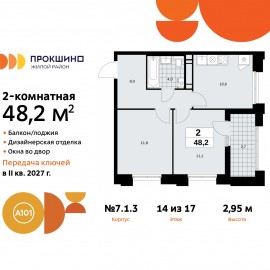 Просторная 2-комн. квартира с отделкой в ЖК "Прокшино" на 14 этаже. Общая площадь: 48.2 кв.м., жилая: 22.9 кв.м., площадь просторной кухни-столовой: 10.6 кв.м. Угловая квартира, очень светлая, естественная вентиляция при открытии окон. В квартире одна лоджия, один совмещенный санузел....