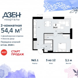 2-комн. квартира бизнес-класса с европланировкой и отделкой в ЖК "Дзен-кварталы" на 5 этаже. Общая площадь: 54.4 кв.м., жилая: 31.8 кв.м., суммарная площадь гостиной-столовой с кухонной зоной: 28.1 кв.м. Европланировка, кухня-гостиная - идеальный вариант для тех, кто любит часто...