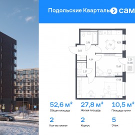 Строим кварталы для жизни с заботой о будущем. Предлагается 2-комнатная квартира комфорт-класса 52, 57 кв.м в корпусе 2 на 5 этаже, в ЖК «Подольские Кварталы» Квартира без отделки. Доступность опции «отделка» и возможность комплектации мебелью и декором уточняйте у...