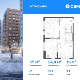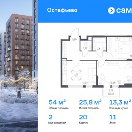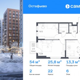 Строим кварталы для жизни с заботой о будущем. Предлагается 2-комнатная квартира комфорт-класса 54, 97 кв.м в корпусе 20 на 11 этаже, в ЖК «Остафьево» Квартира с чистовой отделкой. Доступность дополнительных опций уточняйте у застройщика. Приобрести квартиру возможно по...