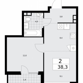 Просторная 2-комн. квартира с европланировкой и предчистовой отделкой в ЖК "Деснаречье" на 4 этаже. Общая площадь: 38.3 кв.м., жилая: 20.7 кв.м., общая площадь гостиной-столовой с кухонной зоной: 17.5 кв.м. Европейская планировка, в просторной кухне-гостиной удобно как готовить, так и...