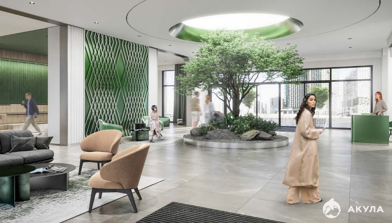 Инфраструктура: Коворкинг, кафе, зона отдыха на крыше, подземный паркинг с зарядками для электромобилей.