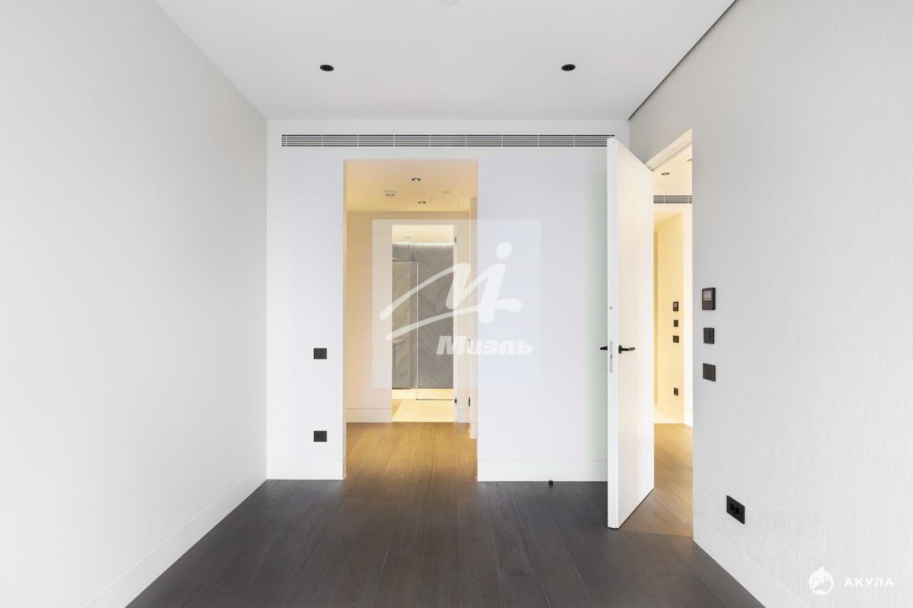 В квартире высокие потолки – 2, 85м. В отделке использованы натуральный камень, сантехника Dornbracht и Catalano, двери Barausse.