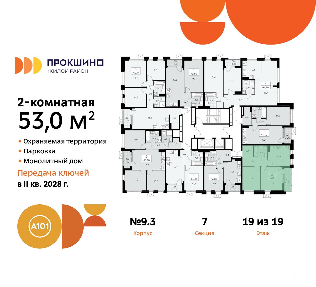 Квартира находится в корпусе 9.3. Дом монолитный, одноподъездный, высотой 19 этажей. На этаже 9 квартир. В подъезде 1 пассажирский и 1 грузовой лифт. Начало строительства - 3 квартал 2025 года. Окончание строительства - 4 квартал 2027 года. Оформление сделки по договору долевого участия.