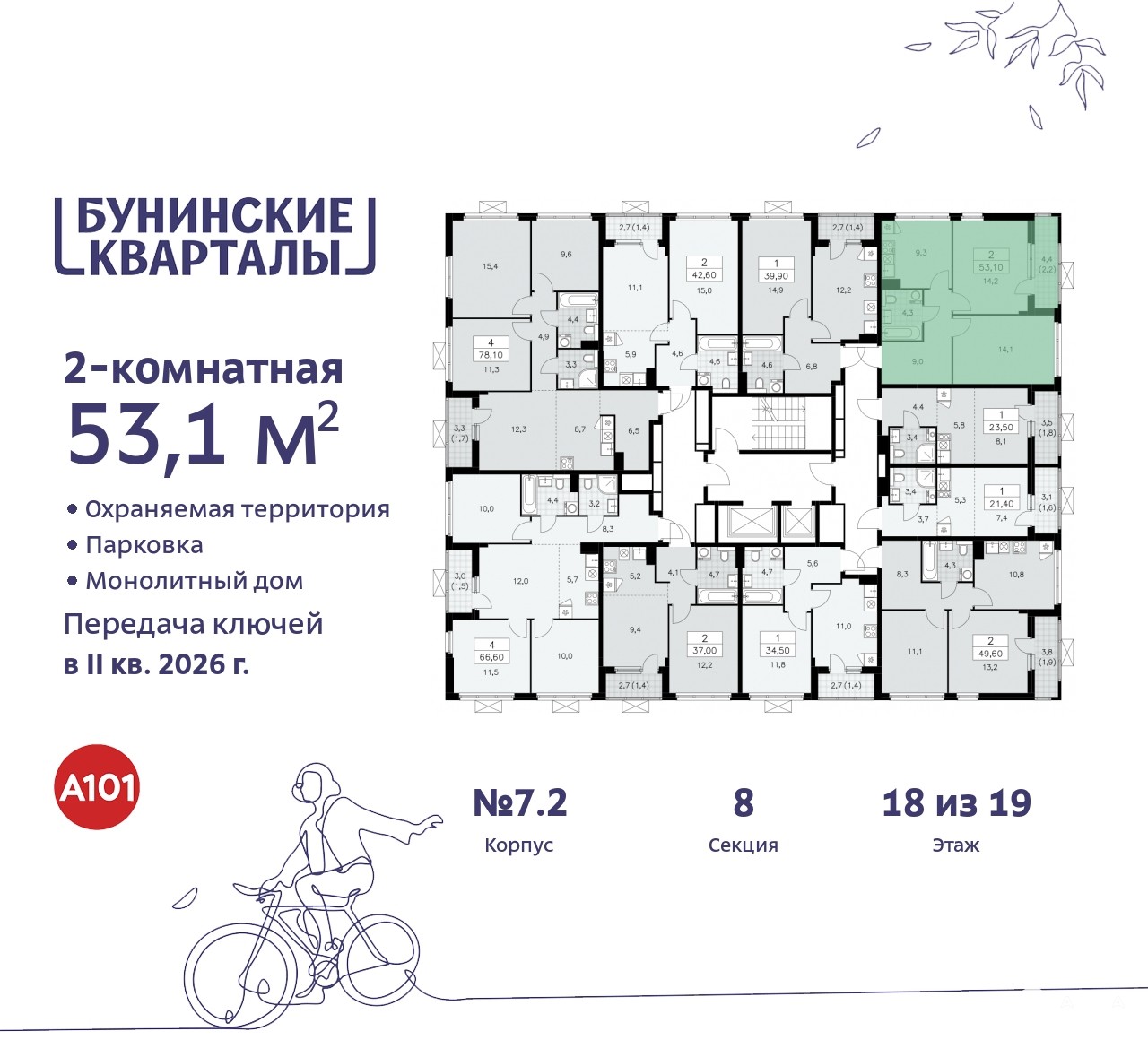 Квартира находится в корпусе 7.2. Дом монолитный, одноподъездный, высотой 19 этажей. На этаже 10 квартир. В подъезде 1 пассажирский и 1 грузовой лифт. Начало строительства - 4 квартал 2023 года. Окончание строительства - 2 квартал 2026 года. Оформление сделки по договору долевого участия.
