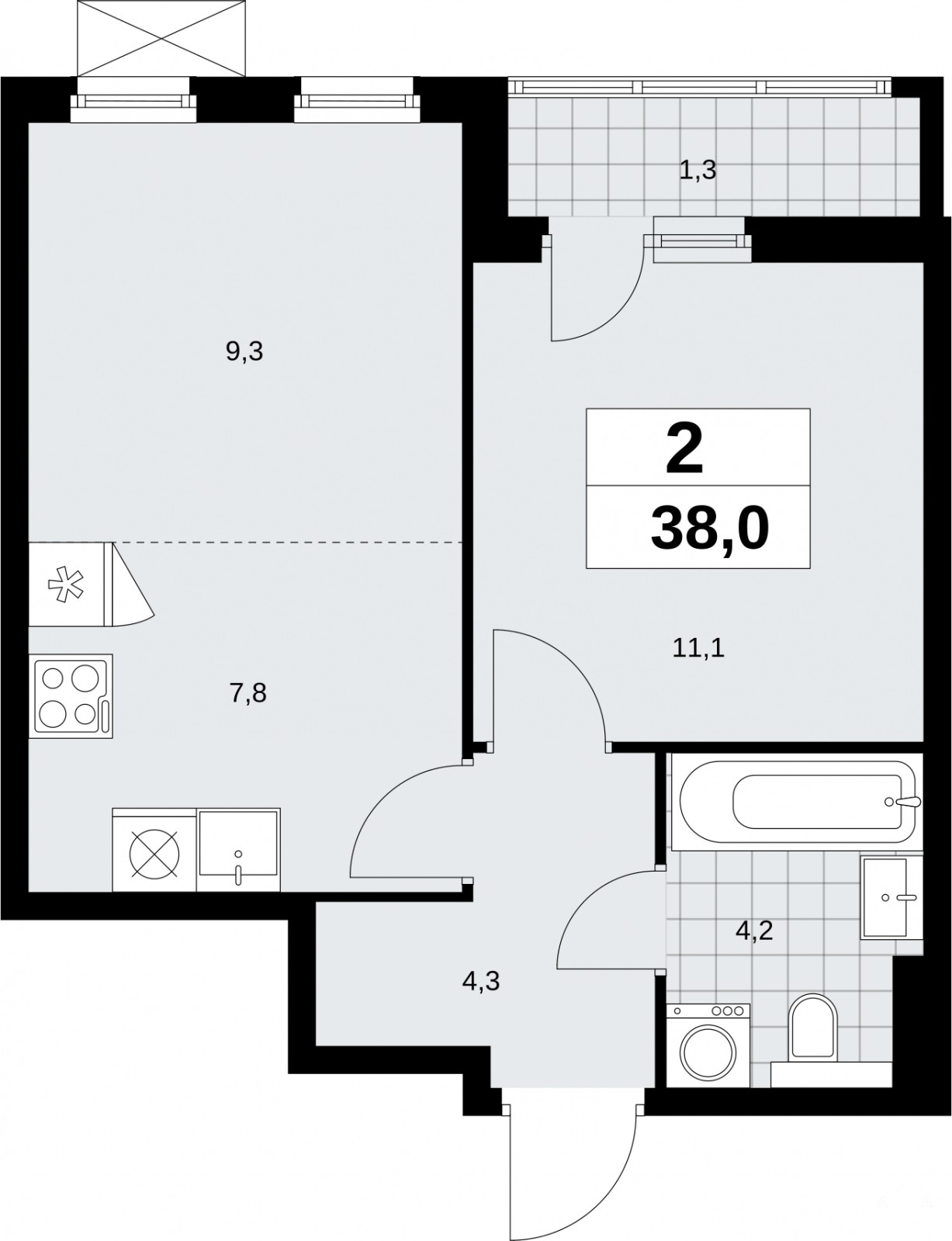 Продается двухкомнатная квартира с европланировкой в ЖК "Бунинские кварталы" на 9 этаже. Квартира без отделки, после выдачи ключей можно делать ремонт. Общая площадь: 38 кв.м., жилая: 20.4 кв.м., общая площадь гостиной-столовой с кухонной зоной: 17.1 кв.м. Европейская планировка, кухня и гостиная объединены в одно просторное помещение. Комнаты изолированные, все окна выходят на одну сторону. В квартире одна лоджия, один совмещенный санузел. Высота потолков 2.8 м.