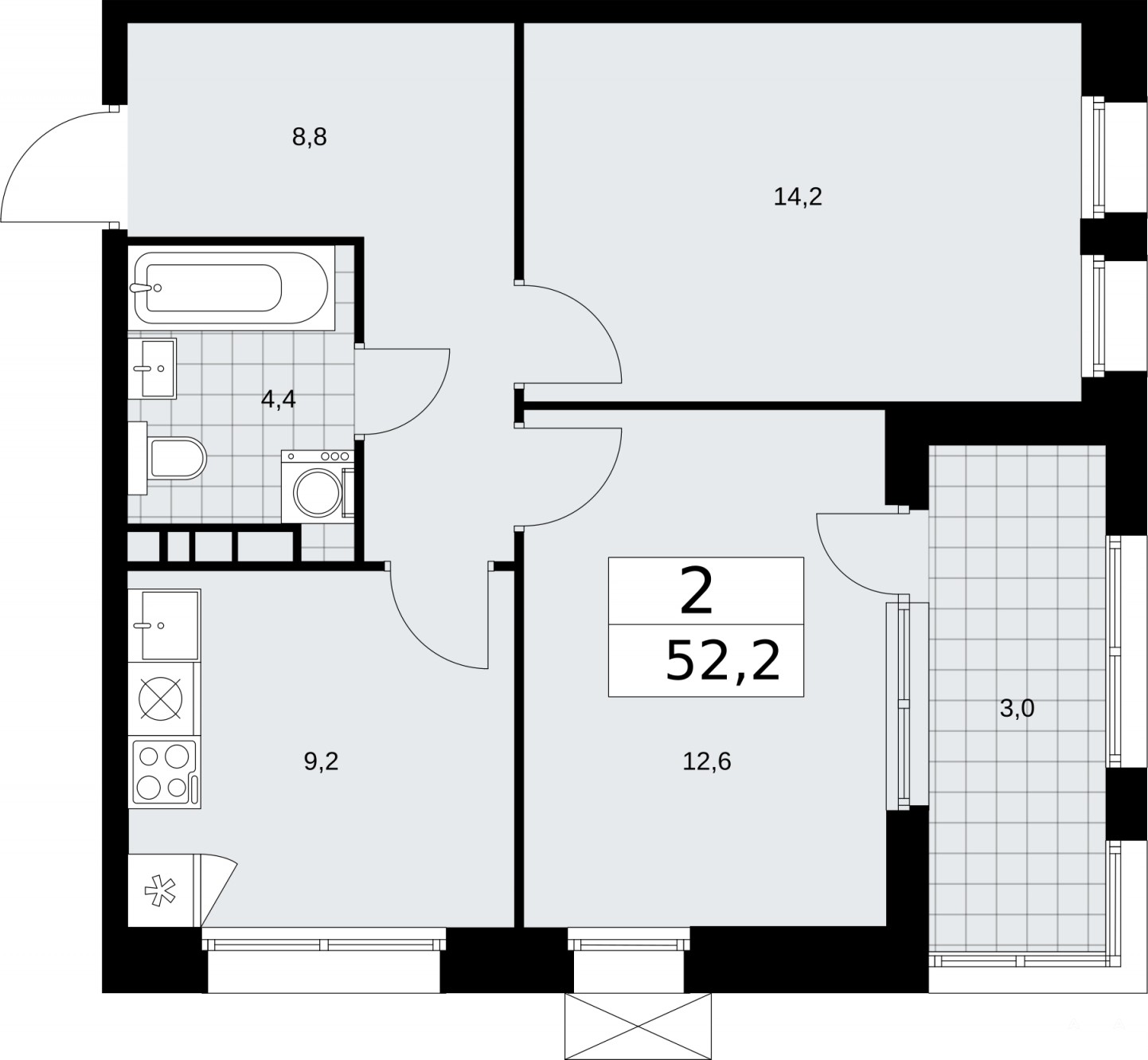 2-комн. квартира в ЖК "Бунинские кварталы" на 15 этаже. Квартира без отделки, новый собственник может сделать ремонт по своему проекту. Общая площадь: 52.2 кв.м., жилая: 26.7 кв.м., площадь просторной кухни-столовой: 9.2 кв.м. Угловая квартира, идеально подойдет любителям тишины и панорамных видов. В квартире одна лоджия, один совмещенный санузел. Высота потолков 3.1 м.
